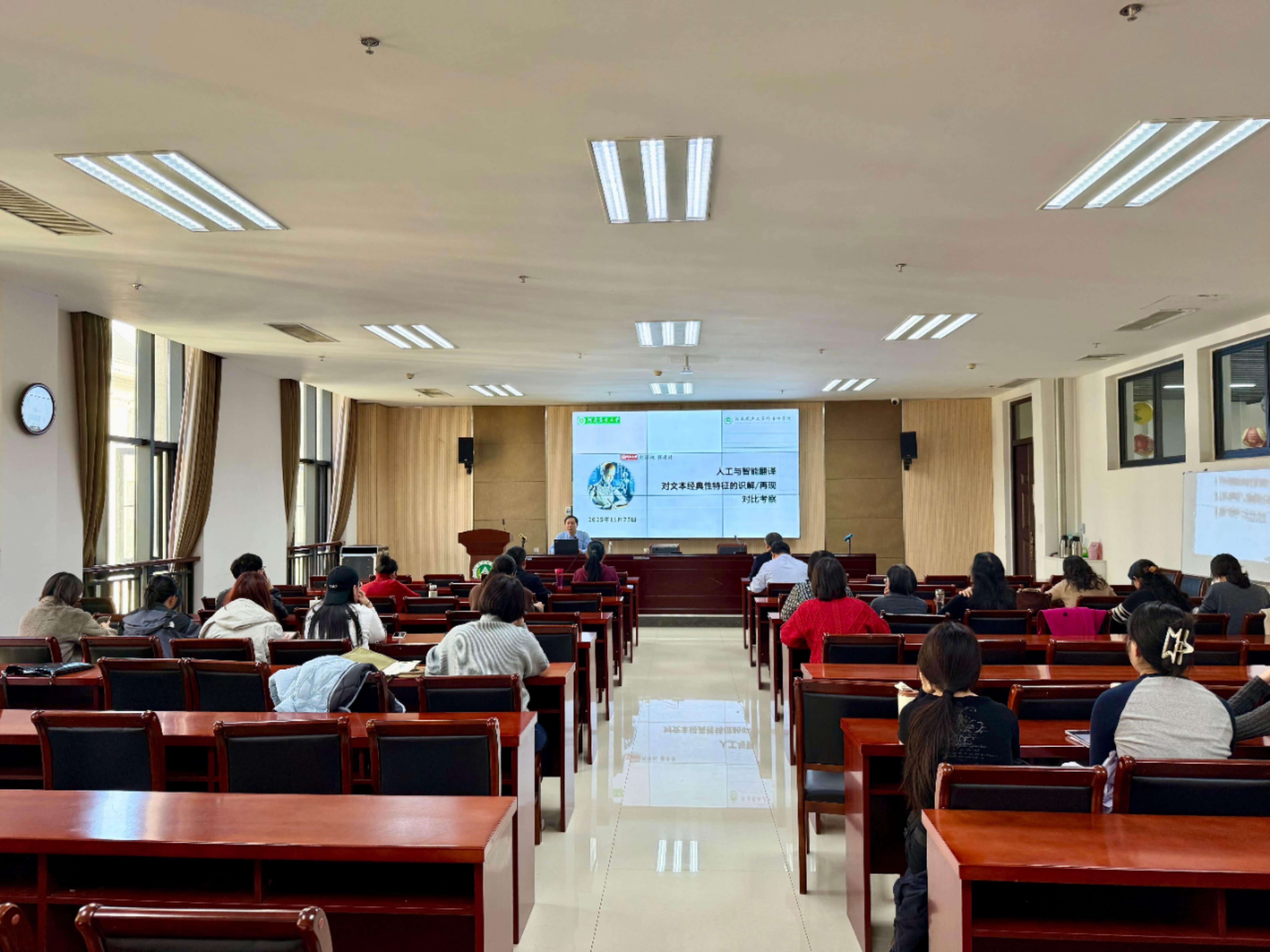 本网讯(审稿:吴玲;供稿:马孝幸;摄影:黄彪)11月25日,河南大学二级教授、博士生导师刘泽权应邀做客东京热在线 第88期励学大讲堂,分别做了题为“人工与智能翻译对文本经典性特征的识解呈现对比考察”和“国家社科基金重点项目‘两岸三地百年女性文学翻译史论’申报论证实例分享”两场报告会。报告会由院长张俊杰教授主持,东京热在线 骨干教师和研究生代表参加了此次报告会。