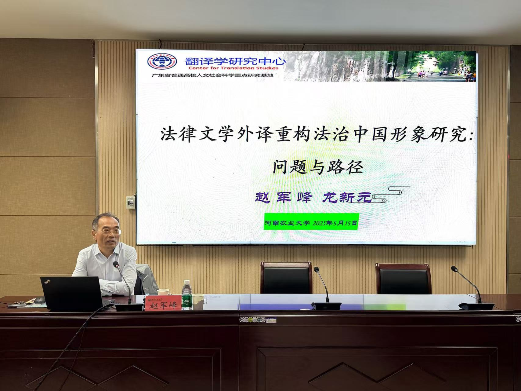 在第二场报告会上,赵军峰从中西“法律与文学”研究源流谈起,尝试厘定中国法律文学的内涵与范畴,廓清研究相关突出问题,明确法律文学外译之于法治中国形象重构的重要意义,提炼机制原理,提出通则模式,为外语学科跟其他学科的跨学科研究提供了新范式。