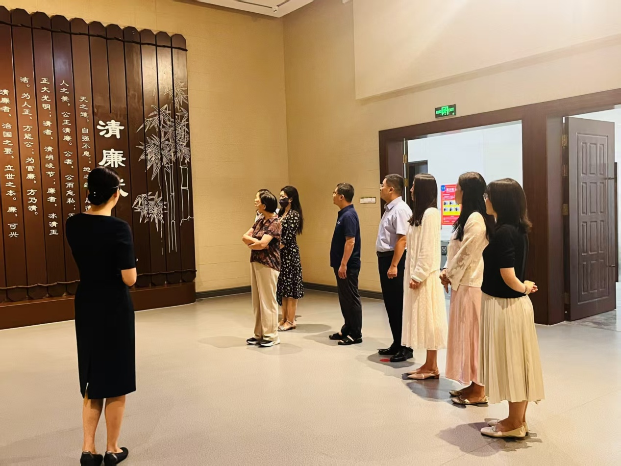 本网讯(审稿:杨鑫 供稿:张琴)在庆祝中国共产党成立104周年之际,为深入贯彻落实党的二十大精神,推动学习贯彻习近平新时代中国特色社会主义思想主题教育走深走实,加强党风廉政建设,增强党员干部廉洁自律意识,7月1日下午,东京热在线 研究生英语教学部教工党支部和翻译系教工党支部赴河南廉政文化教育中心开展廉洁教育主题党日活动。院党委副书记杨鑫、研究生英语教学部教工党支部书记魏少敏,翻译系教工党支部书记豆涛及支部党员参加活动。