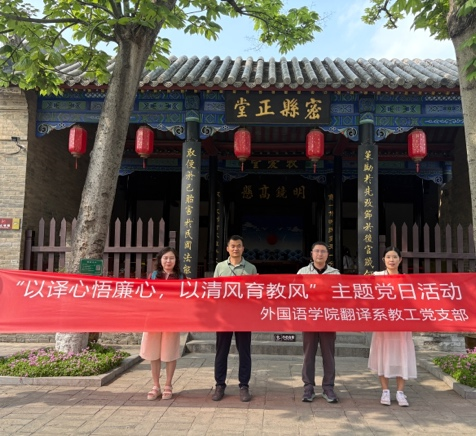 翻译系教工党支部在副院长豆涛带领下,前往新密密县县衙廉政教育基地,开展“以译心悟廉心,以清风育教风”主题党日活动。