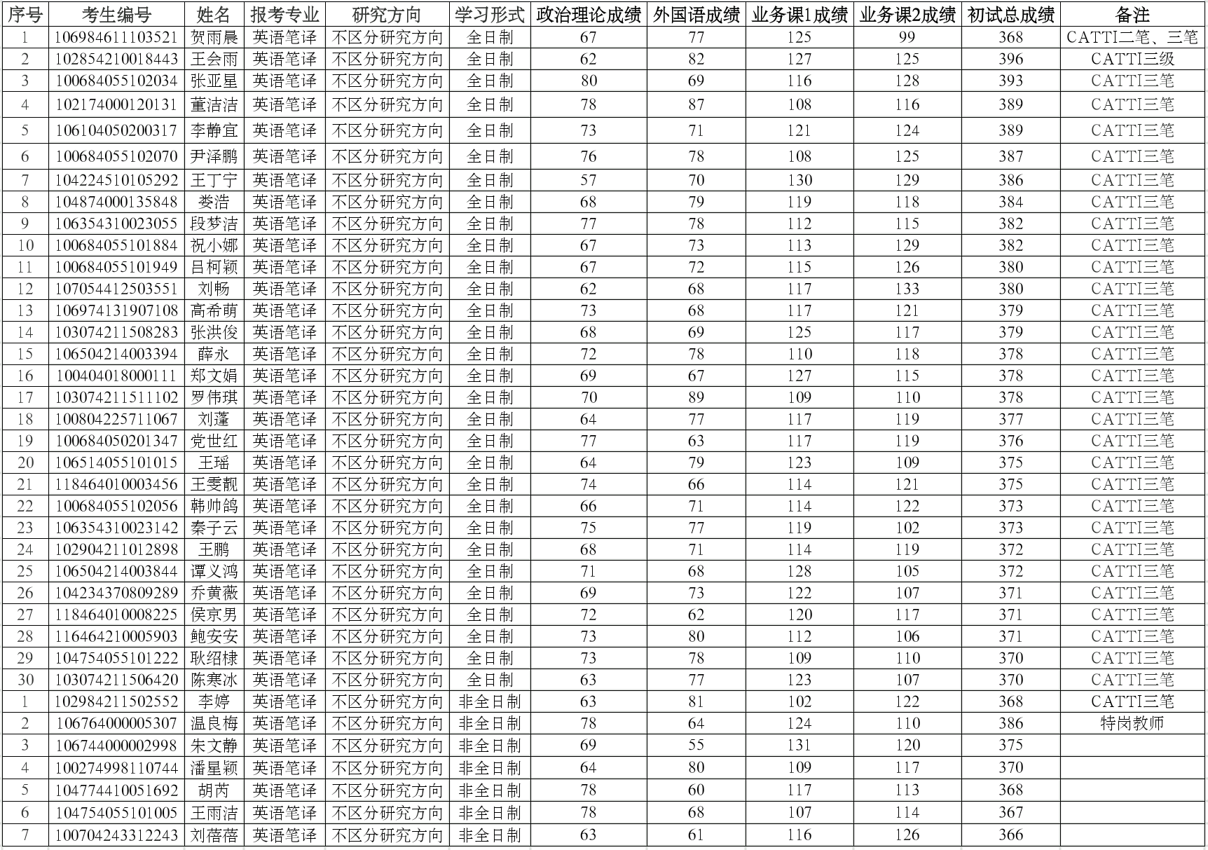 东京热在线 英语笔译专业2024年硕士研究生复试名单(调剂)
