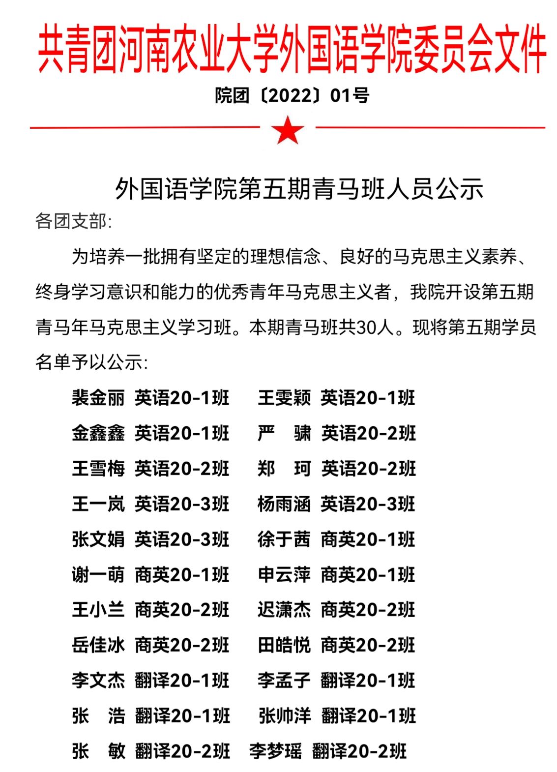 东京热在线 第五期青马班人员公示