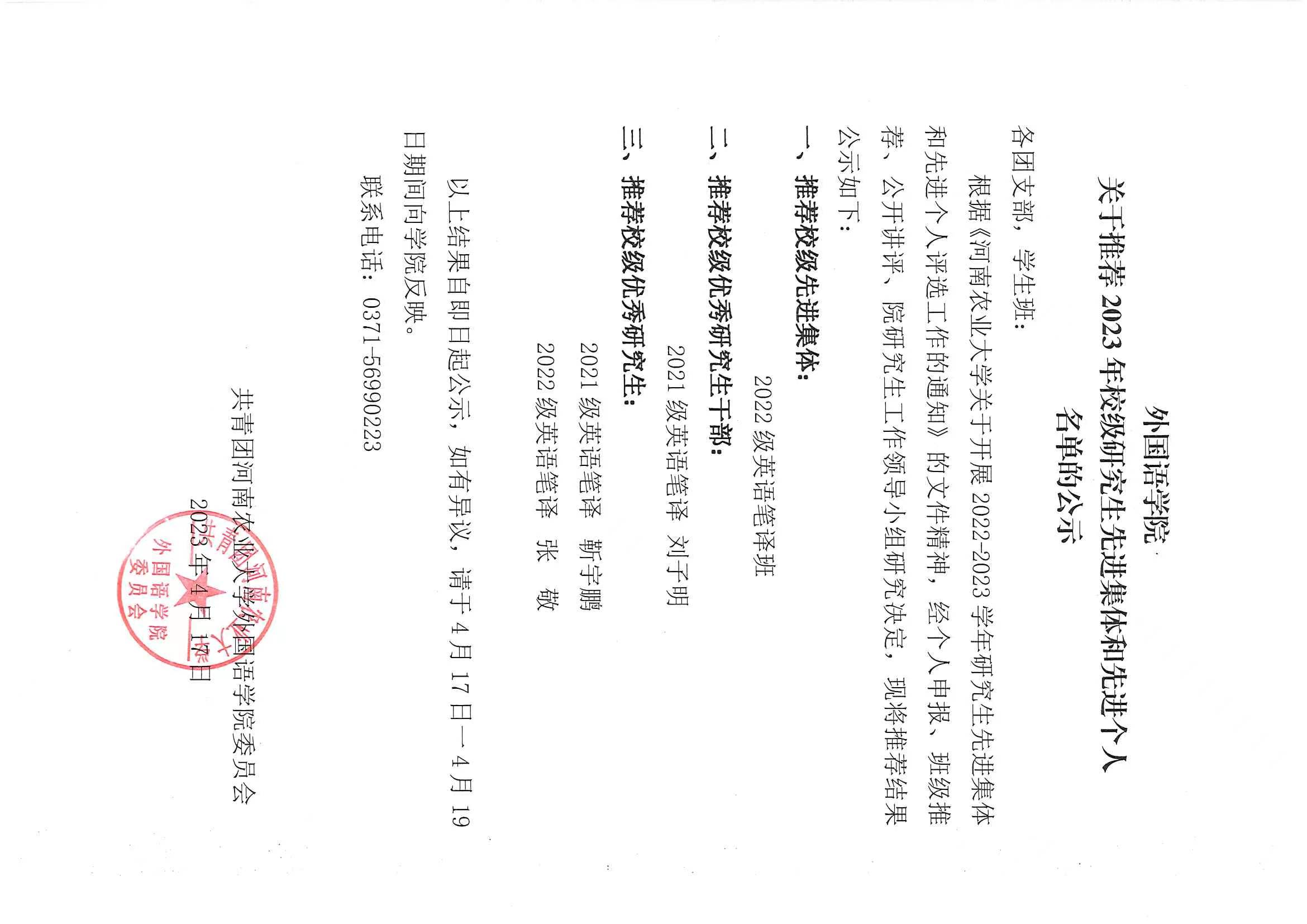 东京热在线 关于推荐2023年校级研究生先进集体和先进个人名单公示