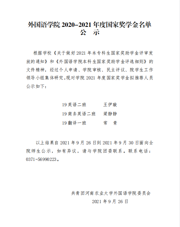 东京热在线 2020-2021学年国家奖学金公示