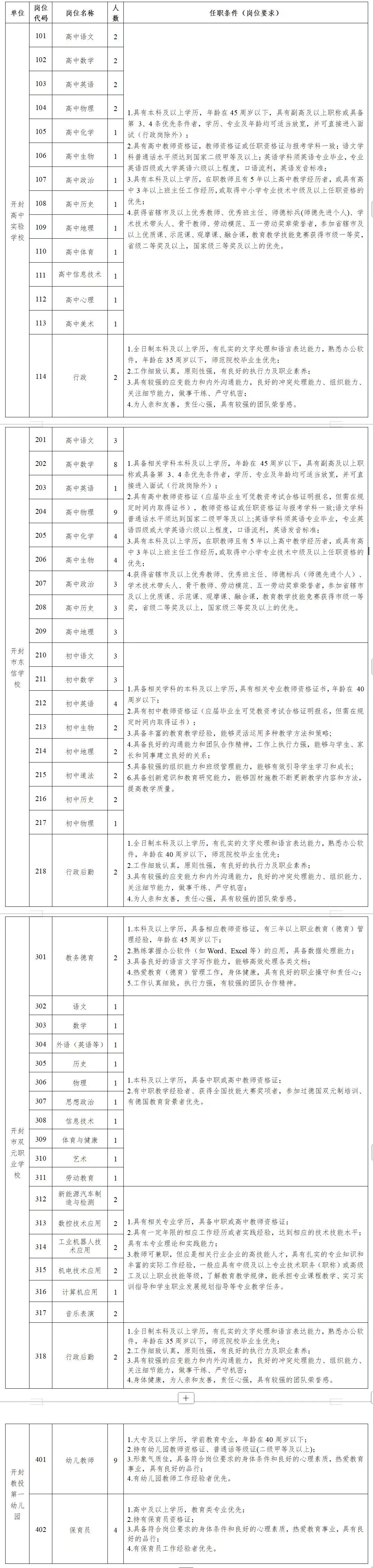 岗位条件详见《2025年开封教投教育集团招聘需求表》(附件1)