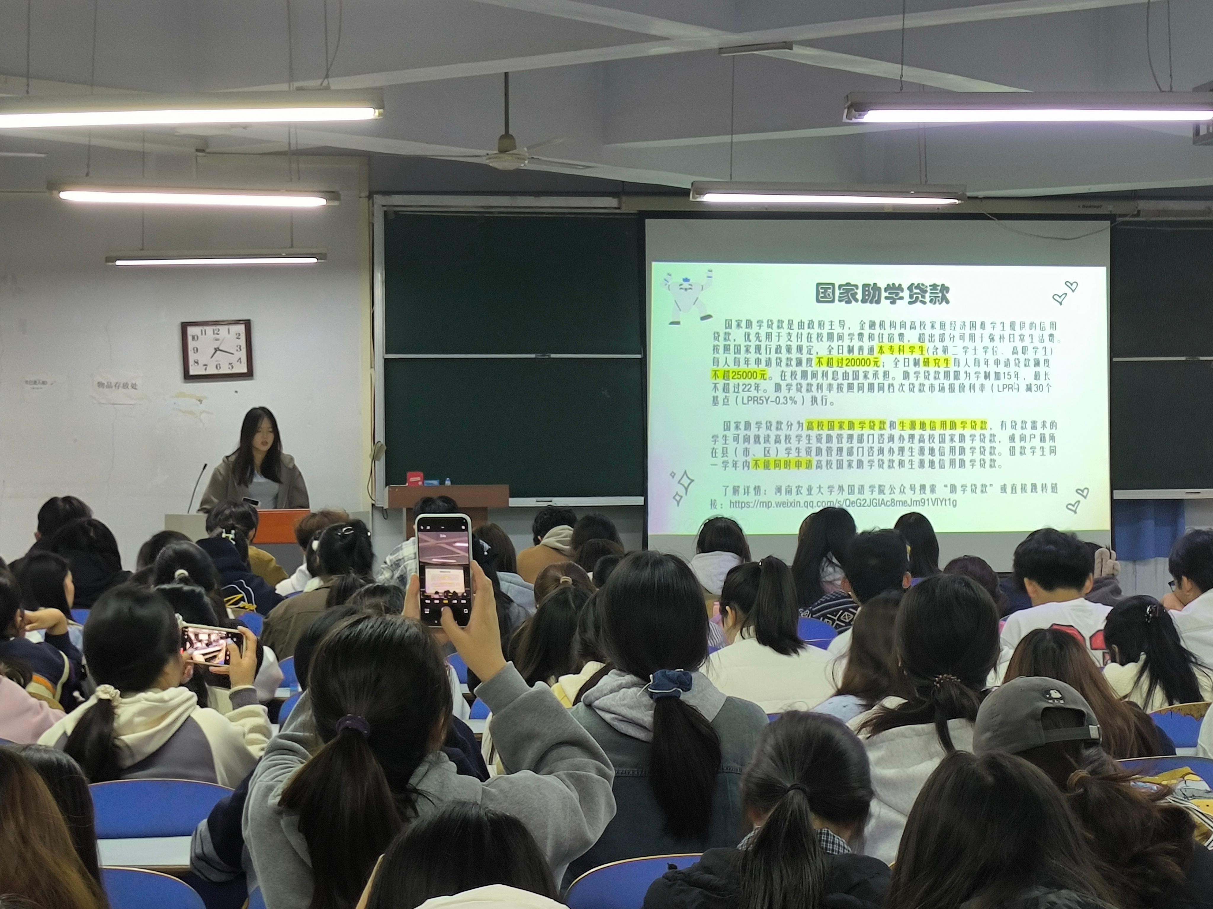 宣讲会上,田佳瑶详细介绍了国家奖学金、国家励志奖学金、国家助学金等资助项目的申请条件、评审流程及资助标准。她强调,国家奖学金旨在激励品学兼优的学生,申请者需在学业成绩、科研创新、社会实践等方面表现突出;国家励志奖学金则面向家庭经济困难且成绩优异的学生,申请者需提供家庭经济困难证明并具备良好的综合素质;国家助学金则重点资助家庭经济困难学生,帮助他们顺利完成学业。