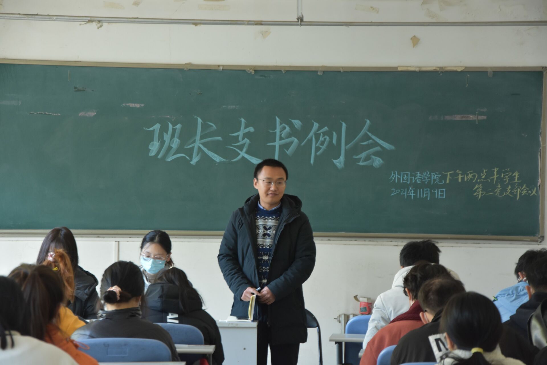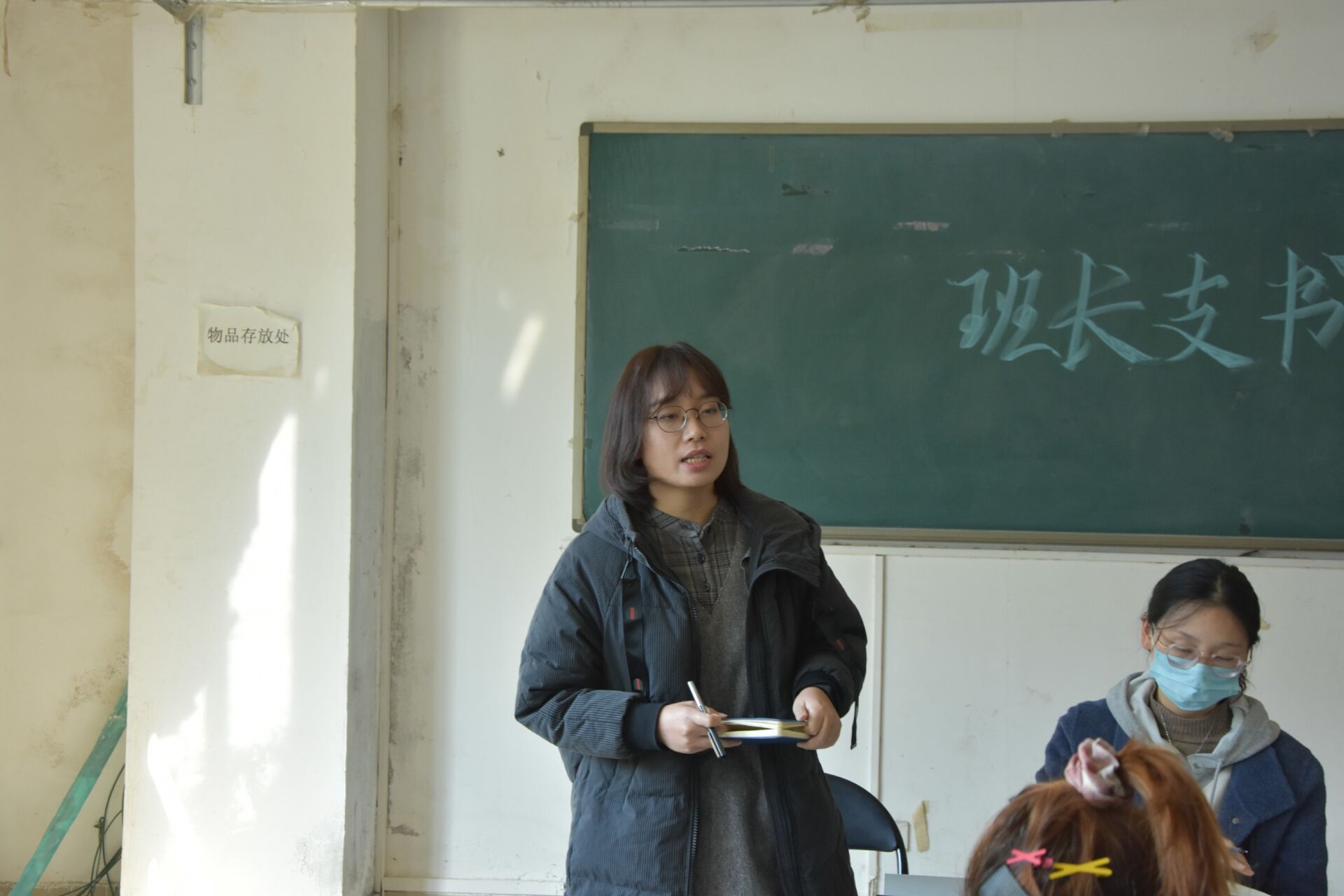 于龙子湖校区海棠园202自习室召开本学期第三次班长支书例会。团委副书记陈桃、冯超、辅导员穆君怡携主要学生干部和各班班长支书参加此次例会。