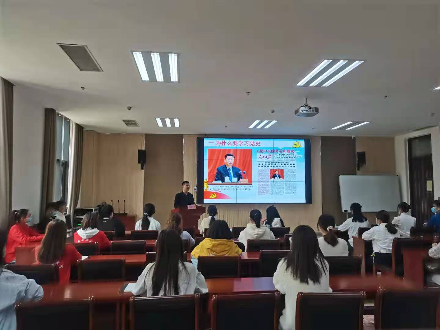 韩东云老师在繁塔楼A324会议室开展了“学党史、强信念、跟党走”主题团课,青马班班主任陈桃以及第四期全体青马班成员参加此次活动。