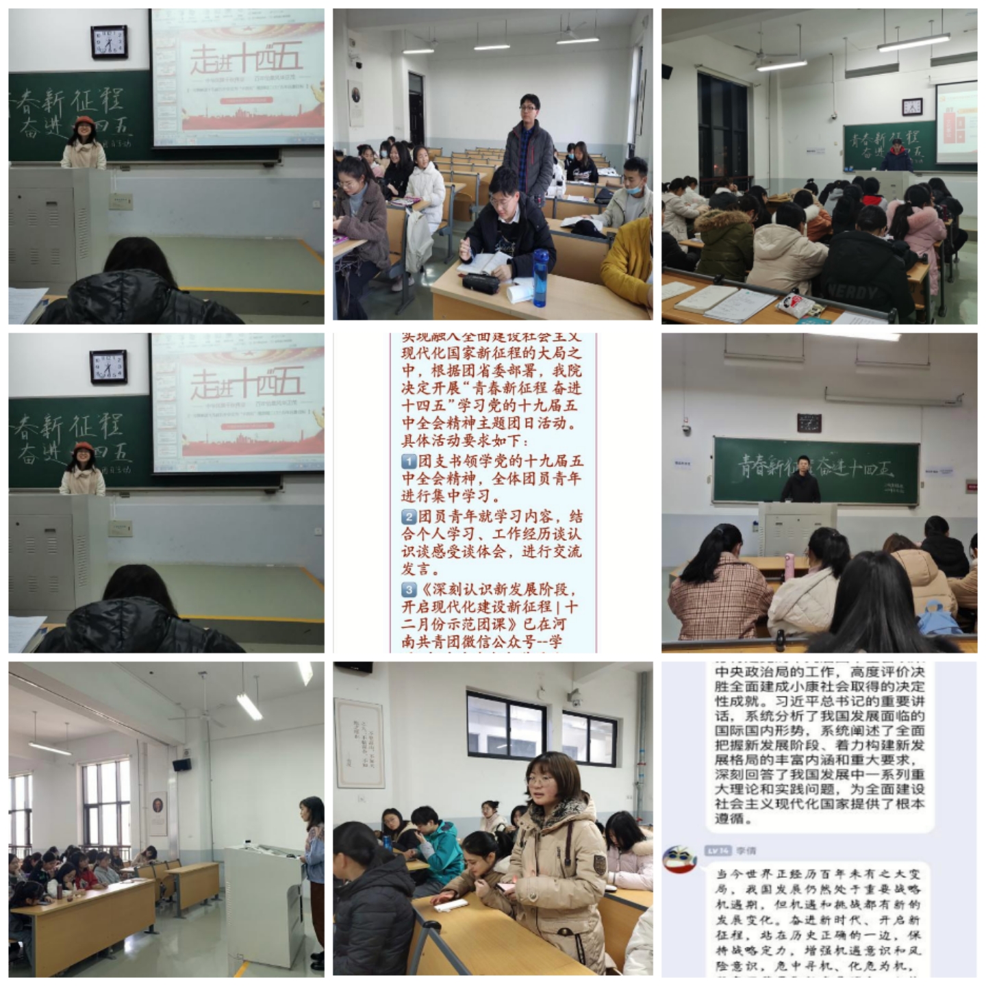 活动伊始,各支部积极组织支部成员观看河南省共青团“深刻认识新发展阶段 开启现代化建设新征程”示范团课,深入了解十九届五中全会的会议内容、重大意义,以及我国在新发展阶段的重要特征、有利条件、战略机遇等。从一年看五年,党和国家取得的历史性成就极为不易、经验极为宝贵;从五年看十五年,全面建设社会主义现代化国家的战略目标鼓舞人心、战略部署催人奋进;为了巩固学习成果,各团支部在团支书的组织和带领下展开了热烈讨论。讨论过程中,同学们畅所欲言、从不同角度发表见解。并纷纷表示要立志向、修品行、练本领,为成长为社会主义现代化国家的建设者时刻准备着;活动结束后,各支部成员纷纷撰写学习感悟,一篇篇内容详实、语言恳切的文章深刻有力地体现出东京热在线