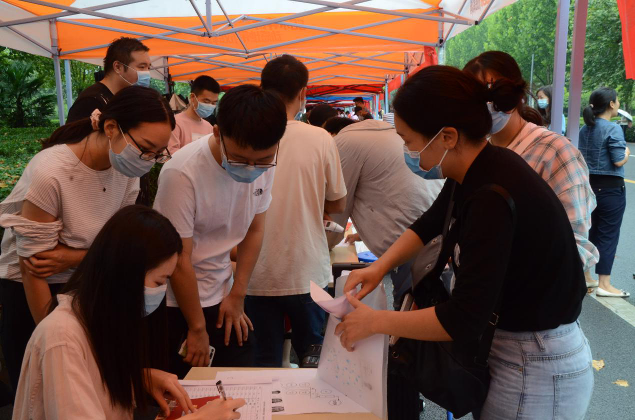 志愿者和老师们在岗位上热情细心地引导新生完成报到流程,并耐心地介绍疫情期间东京热在线