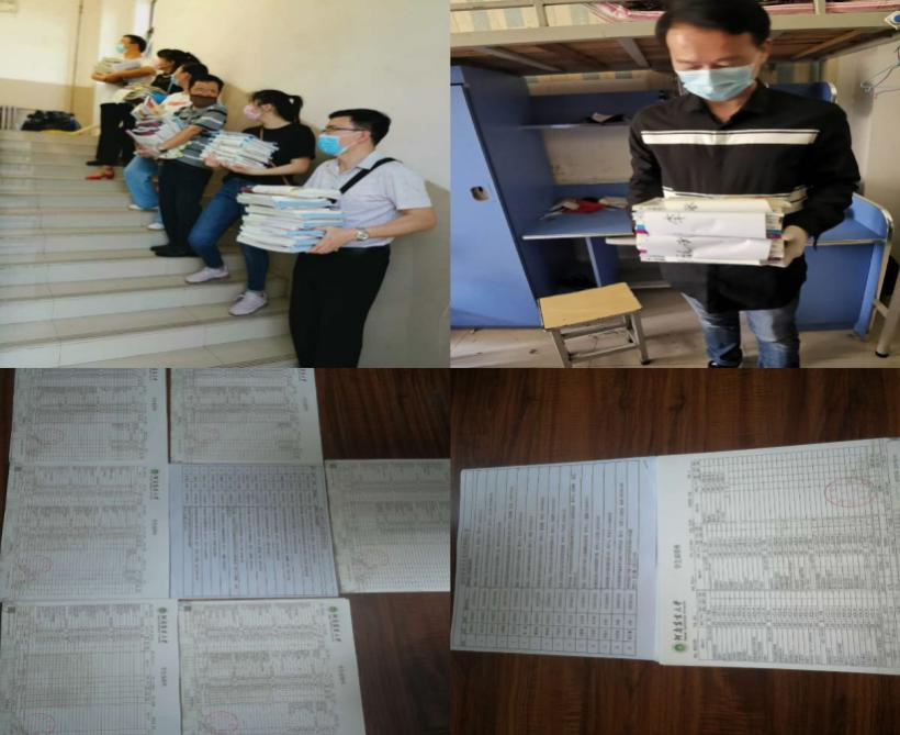 党委副书记周晓和辅导员班主任一起收集需要给学生邮寄的学习资料