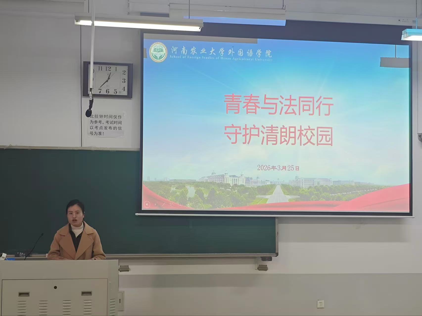 于繁塔楼D102召开春季法治宣传教育专题会。团委书记李晶出席会议,23、24 级全体学生干部及各班班长、支书参与本次活动。