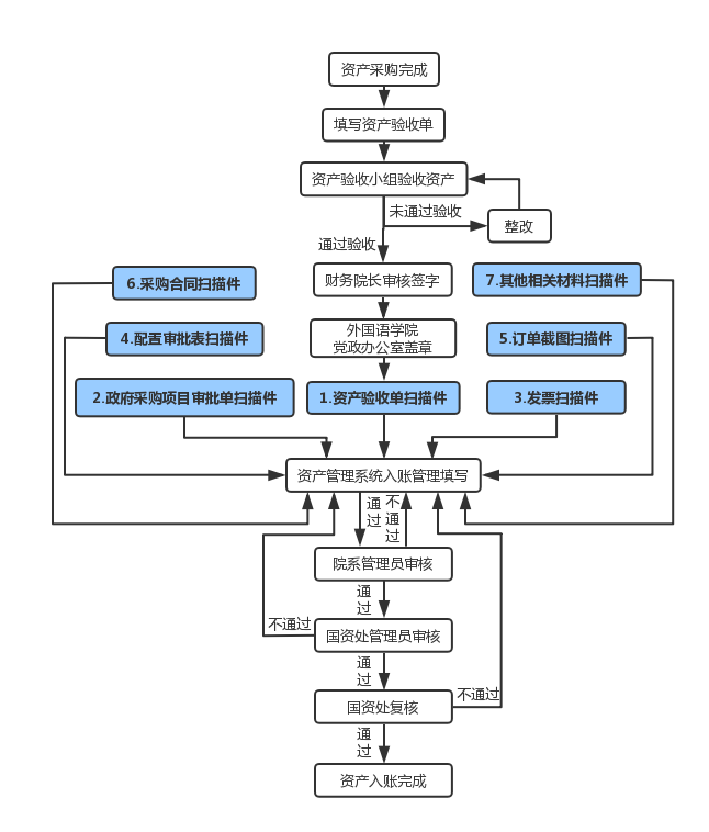 注:资产入账完成后,凭资产管理系统打印的入账登记单及相关材料,可进行报账手续。